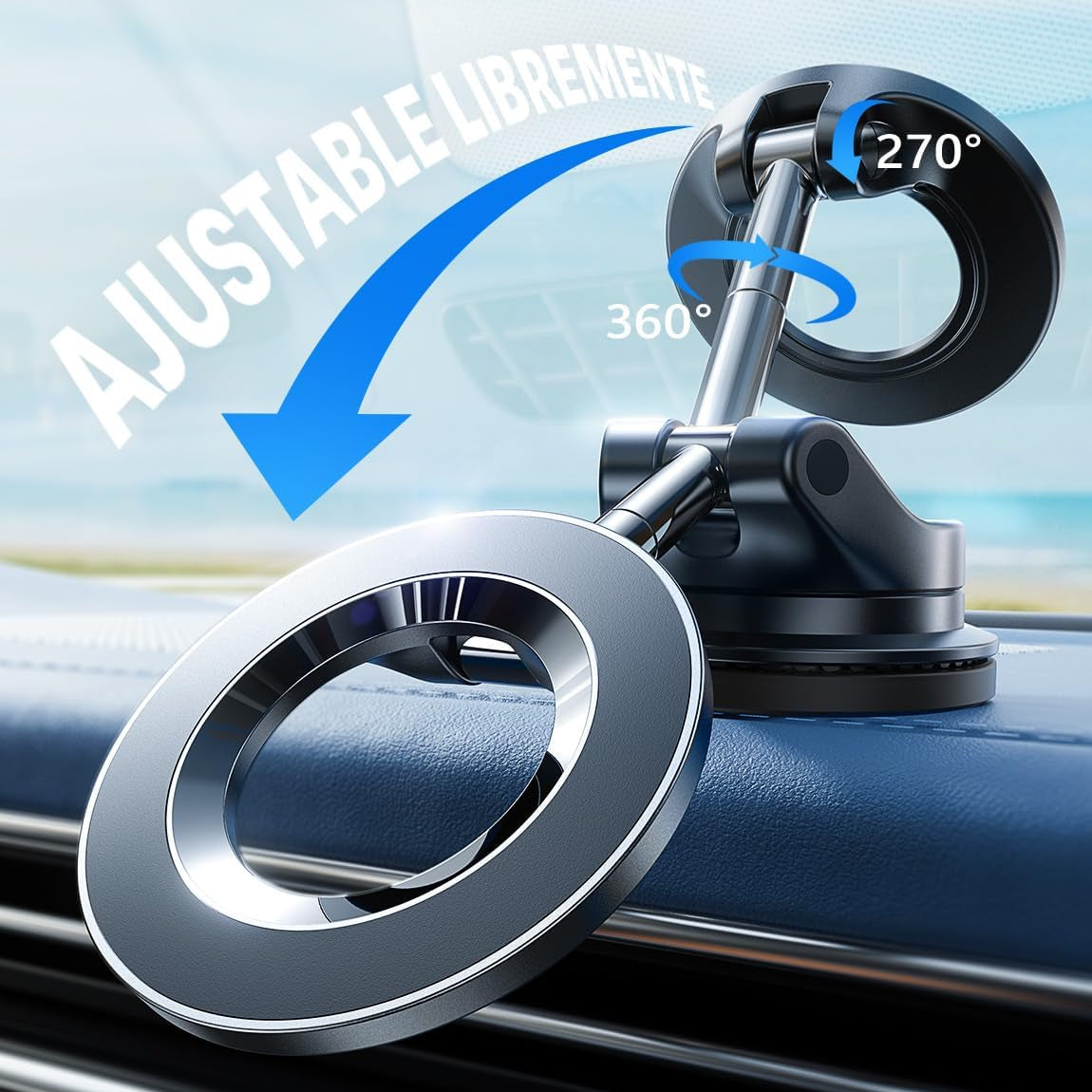 Olvídate de los soportes que se caen con el primer bache. Nuestro sistema de succión al vacío se adhiere firmemente al tablero o parabrisas, mientras los imanes N52 aseguran tu teléfono en cualquier terreno.